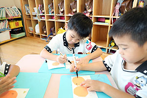 年中、ばら・すみれ、たんぽぽ組さんが「敬老の日」の制作をしていました。