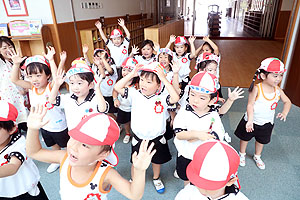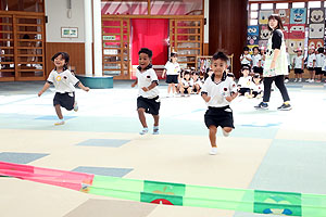 年少組さんたちが広いエンゼルドームでかけっこをしていました。