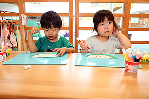 2歳児クラスひよこ組さんが「スイカ」の制作をしていました🍉