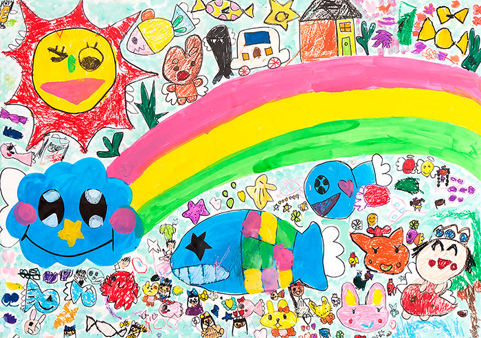 絵は子どもたちの心のメッセージ。描くことで個性を存分に発揮し、のびのびと自己を表現する楽しさを知ってほしいと思います。子どもたちの創造力・表現力を最大限に引き出せるよう、園では各教師が幼児絵画の専門的な知識・技術を修得し、それを絵画活動に反映させています。これまでに子どもたちの描いた作品は、世界児童画展や全国教育美術展などで多数入賞しています。