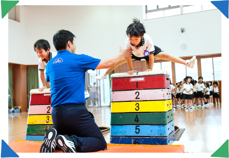 『未来を生きるたくましい力』、それには身体的な強さだけでなく、精神的な強さが伴わなければなりません。集団生活における体育を通じて、相手に対するルールやマナーを身につけ、同時に集中力・忍耐力、最後まであきらめない強い精神力が持てるよう、心の成長をしっかりとサポートします。