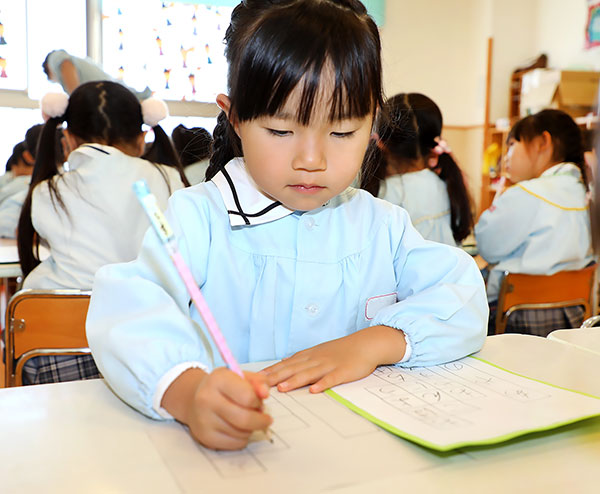 鉛筆の持ち方や正しい筆順など、基礎からしっかり学びます。