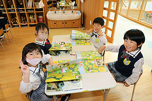 年中ひまわり組さんたちが月刊絵本に取り組んでいました。