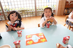 • 入園2日目のお給食の様子です 年少組 NO.2