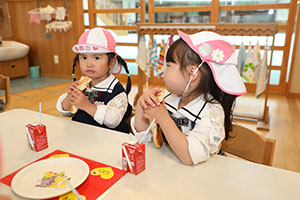 • 入園2日目のお給食の様子です 年少組 NO.1