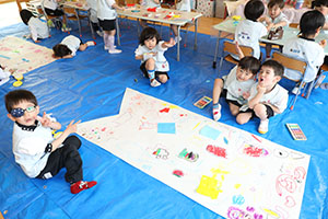 年中すみれ組さんがみんなで大きな鯉のぼりの制作をしていました☆