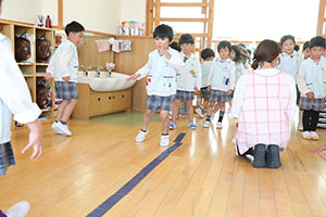 年長A組さんたちがお部屋で「リズムジャンプ」をしていました✨