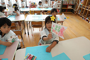 年中たんぽぽ組さんたちがこいのぼりの制作をしていました。