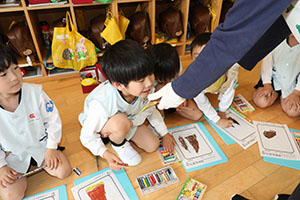 年長B組さんたちが4月の旬の野菜「たけのこ」をじっくり観察をしながら絵を描いていました。