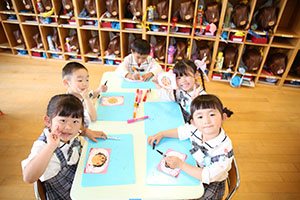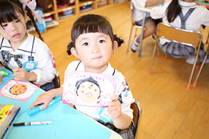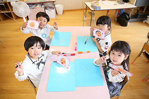 年中さくら組さんたちが母の日に向けて、大好きなお母さんに贈るプレゼントを一生懸命作っていました。すてきなお母さんの顔ができましたね。お母さん、楽しみにしていてくださいね!!