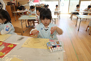 年少うさぎ・ぱんだ組さんたちが美味しそうなスパゲティを描いていました。