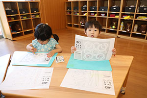 上手にクレヨンを持って円や線を書くことができましたね☆