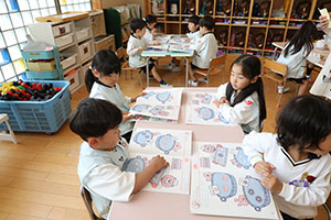 年中すみれ組さんたちが数のワークに取り組んでいました。