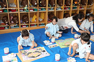 今日は年長A・B組の絵画教室がありました。