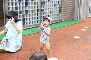今日は噴水プール、おもちゃ、水鉄砲などで遊び、熱い日中に冷たい水を浴びることができ、とっても充実した水遊びになりましたね♡