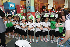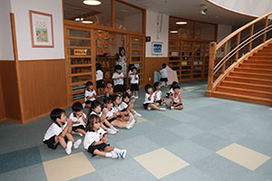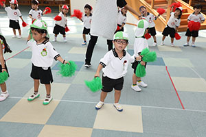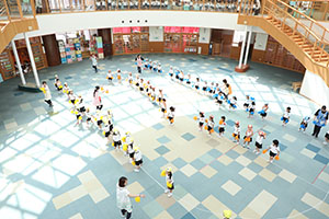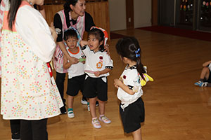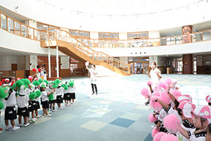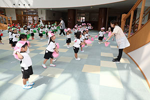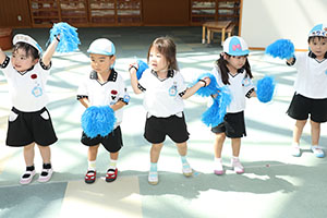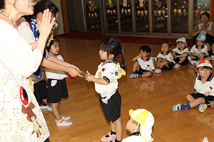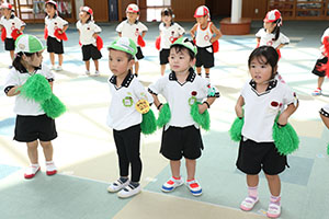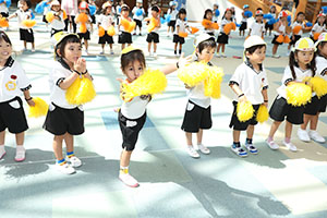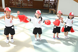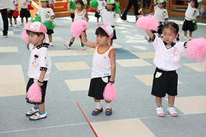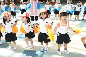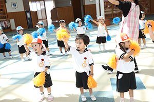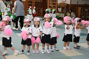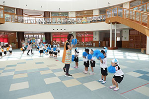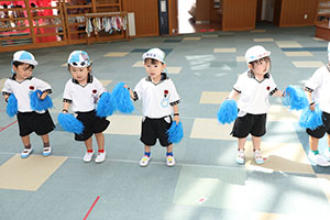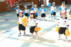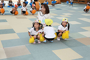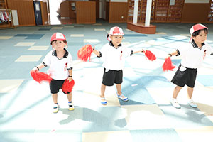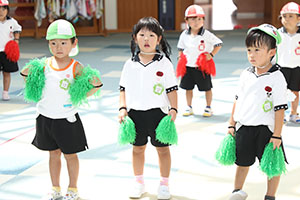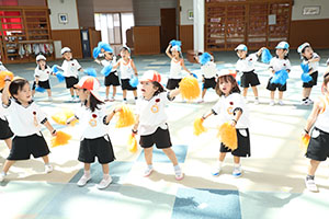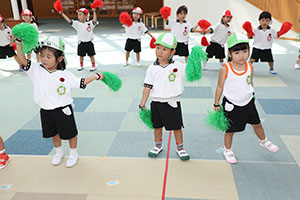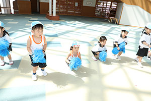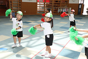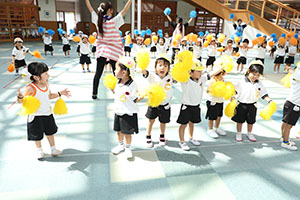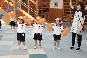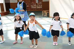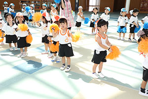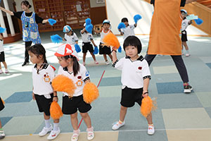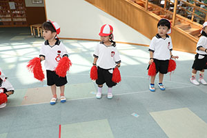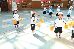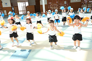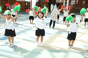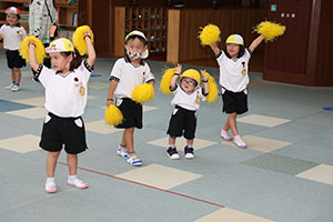 今日は、年少組さんが、エンゼルドームで運動会のリズム活動を行いました。