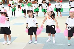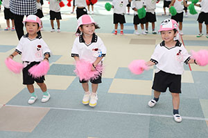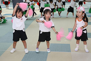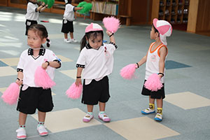 「アララの呪文」の曲に合わせてポンポンをもって、ノリノリで踊る年少組さんたち☺