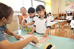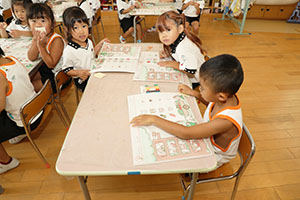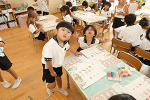 一人一人集中して取り組む姿が見られました✨先生に合格のスタンプを押してもらい、少しずつ「できた!」という達成感も味わいながら数への興味が広がっているようです☆