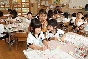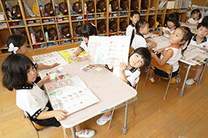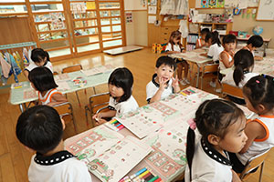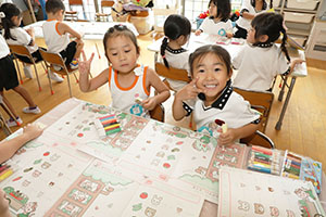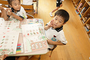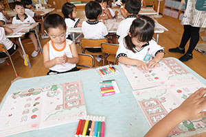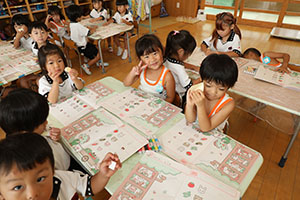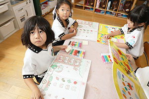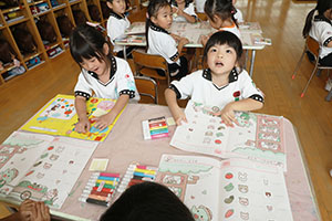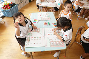 年中さくら組さんたちが数のワークに取り組んでいました。